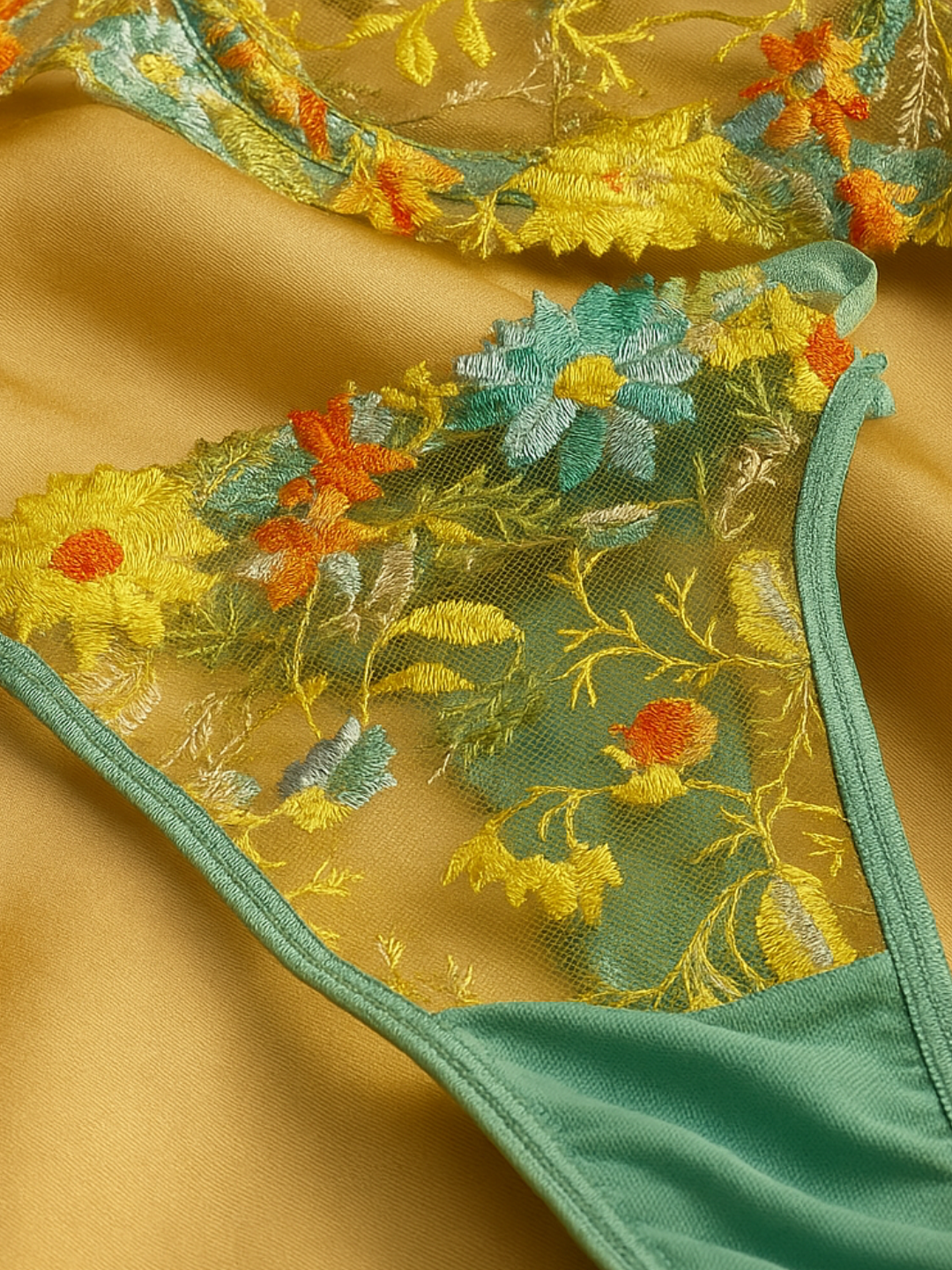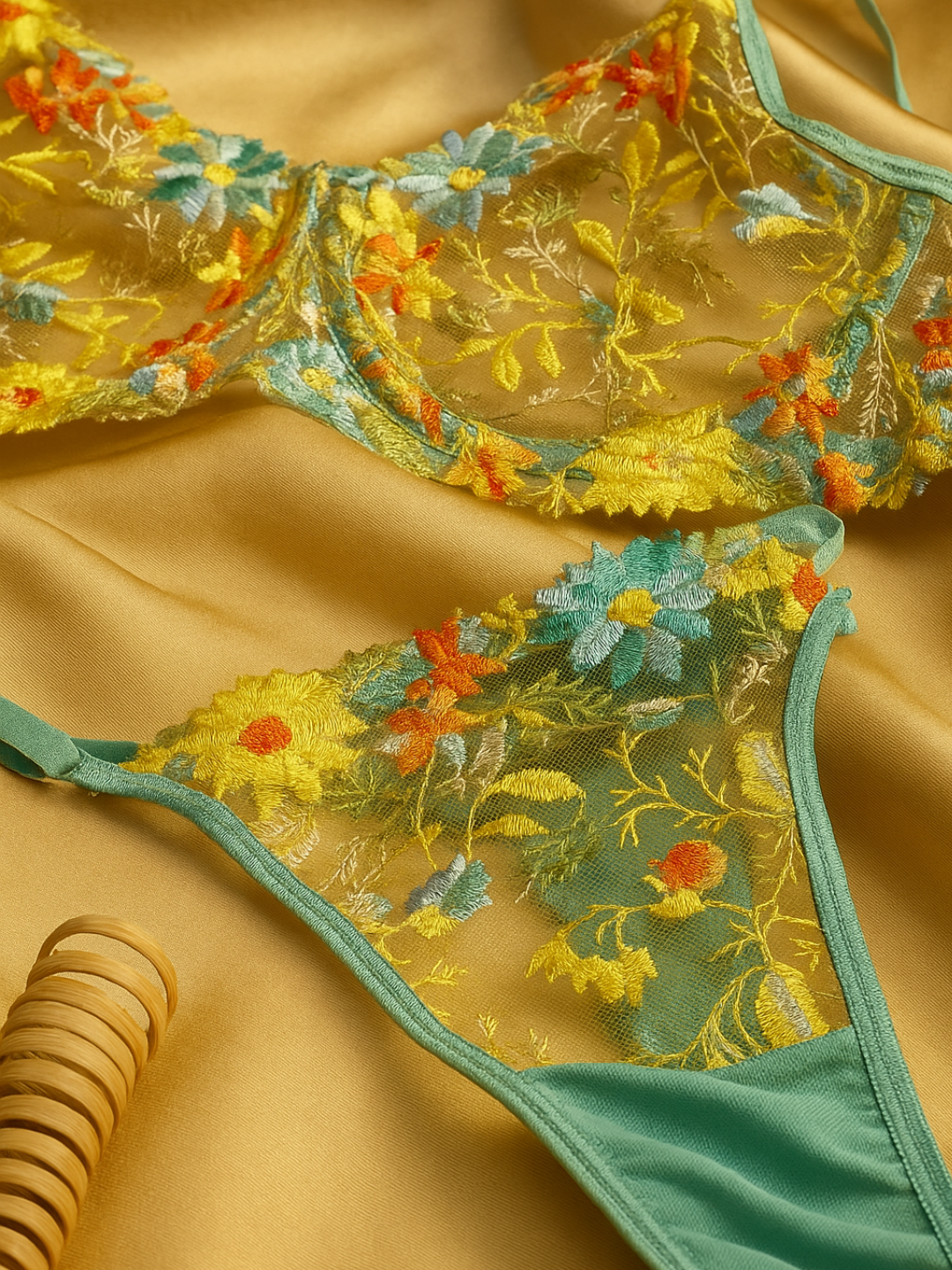 The underwired, non-padded cups offer natural lift with a barely-there feel, while adjustable straps and back hook-and-eye closures promise a flawless fit every time. Finished with intricate floral embellishment, it’s not just lingerie - it’s wearable art.