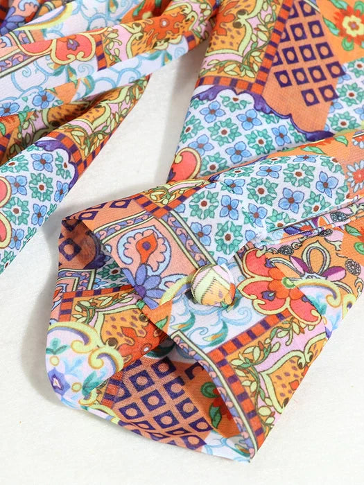 Step into sophisticated charm with our Floral Shirt Print V Neck Three-Piece Ensemble. Meticulously crafted from a blend of nylon and spandex, this ensemble offers a breathable fit that contours delicately to your form. The v-neckline adds a touch of femininity, while the floral print brings a fresh, vibrant feel to your wardrobe. Whether worn together or as separates, each piece complements the other seamlessly.